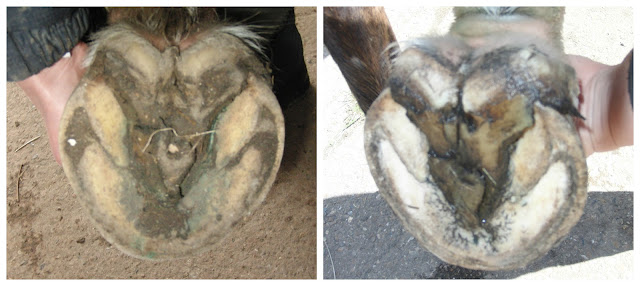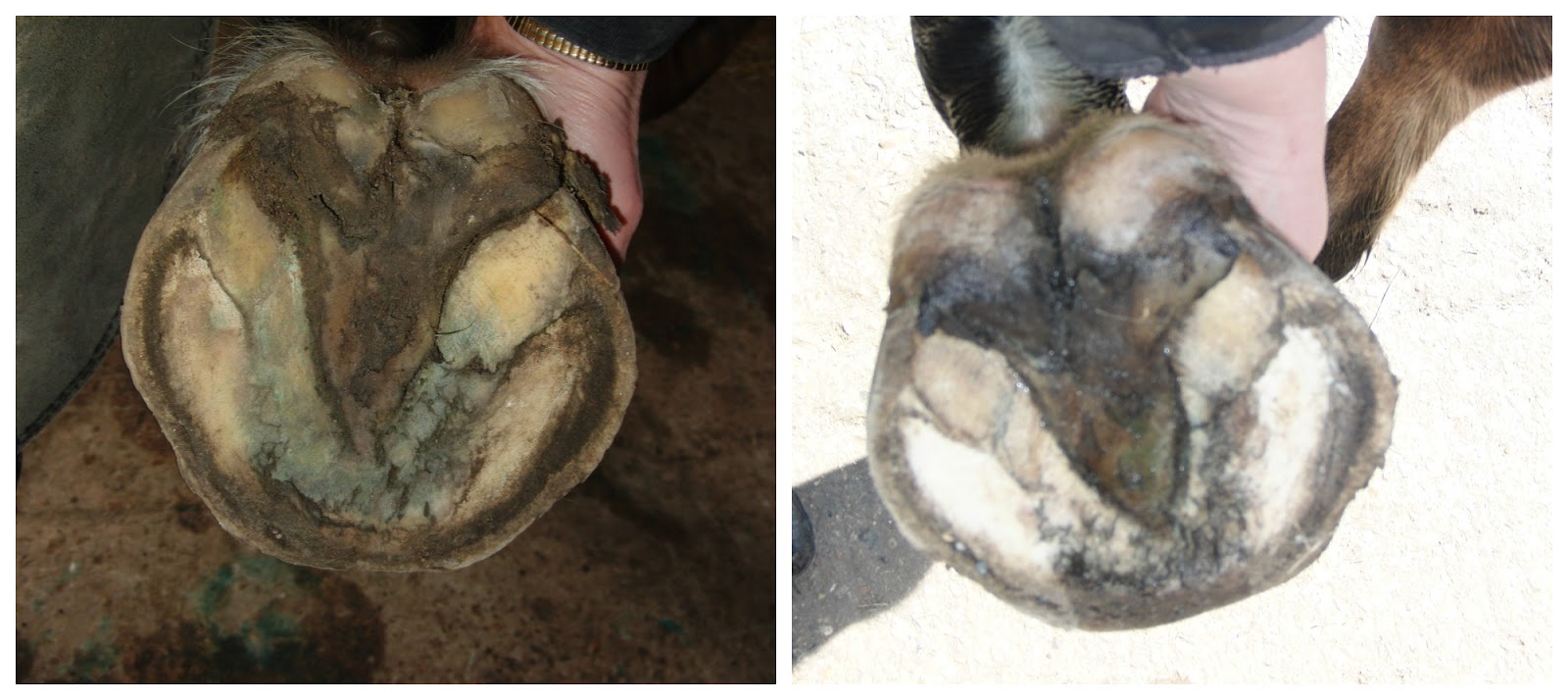 It looks like the digital cushion is strengthening up nicely. I'd personally treat the infections in the frog area, and treat to prevent infections in the area where he is putting out strong butresses. Yes they look strange, but if he's getting the correct conditioning, i'd hang in there for some months yet.