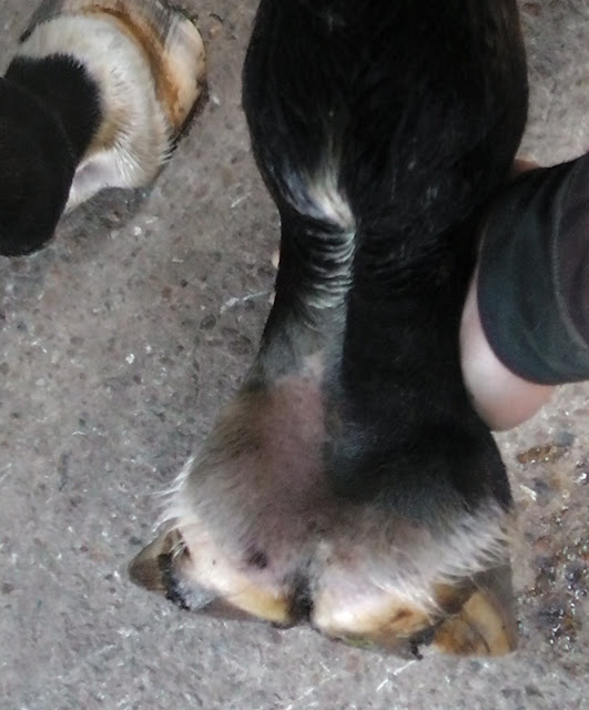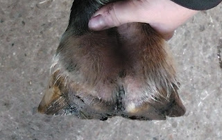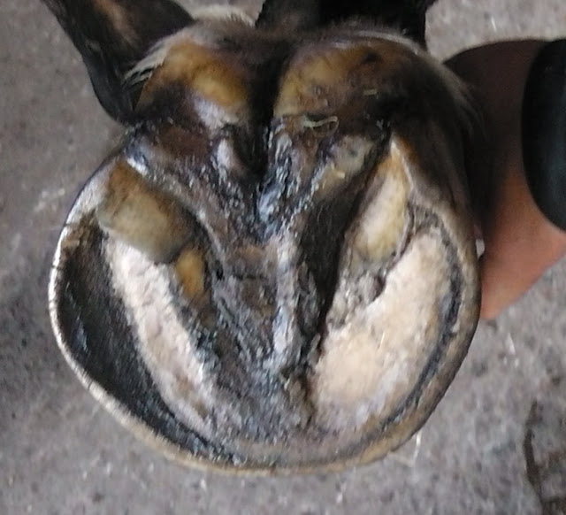 deviation had split and fallen off left fore. Took a fair bit of hoof wall with