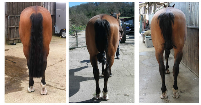 Idris did the same sort of stance change after being trimmed by Pete Laidley - who took his feet back to the shape he had as a three year old - all the farriers were saying that his pigeon toed stance and turned legs was his conformation and they couldn't change it - I remember his conformation as a three year old, and that's what he has returned to.