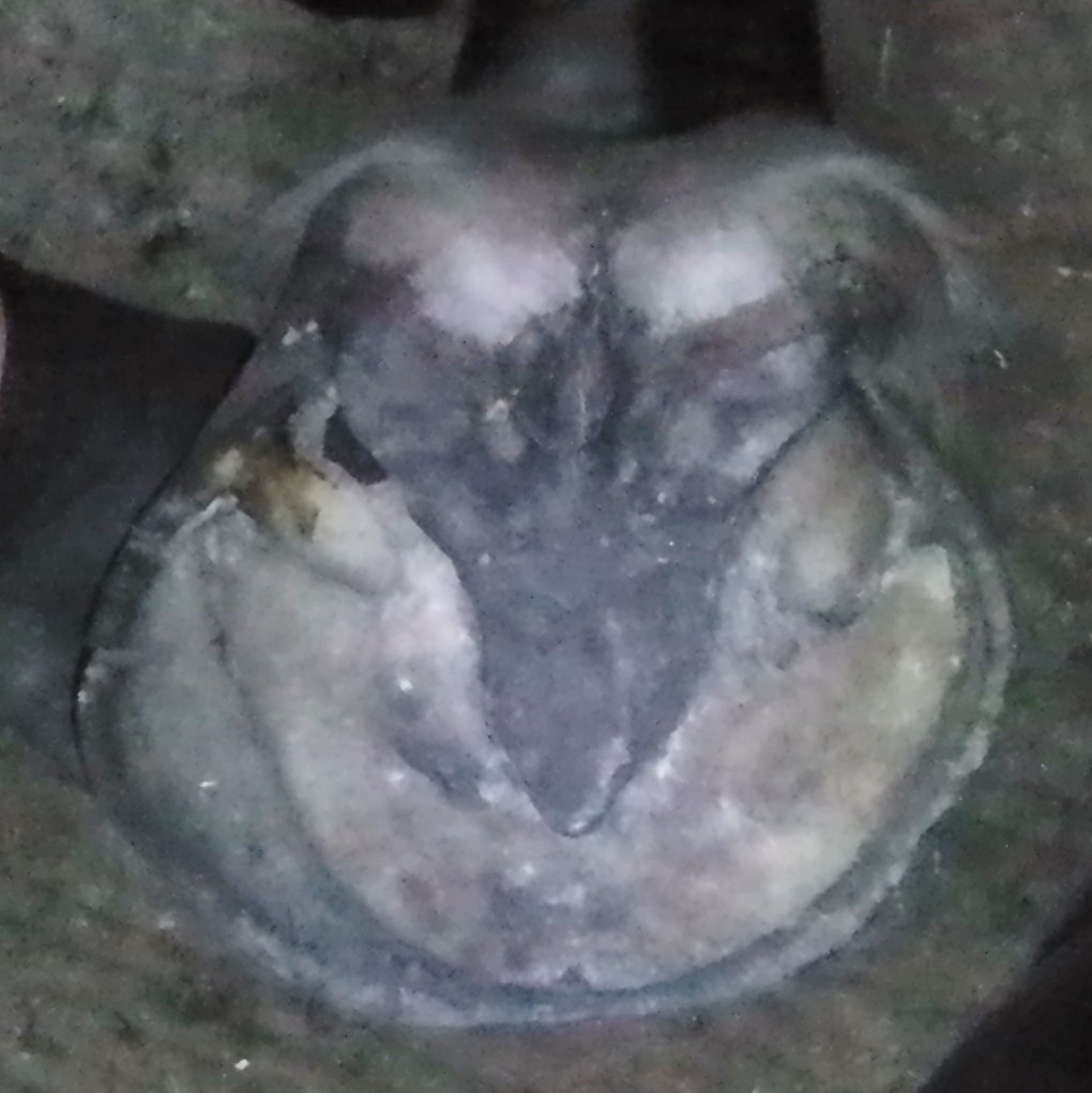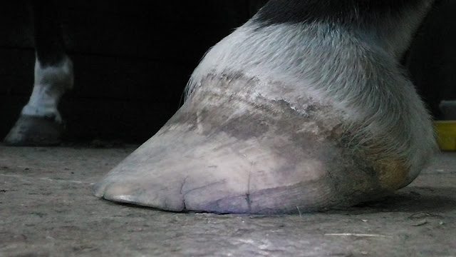 Left fore showing where hoof wall has chipped deviation off (ignore the black rubber school surface I failed to pick out before taking picture)