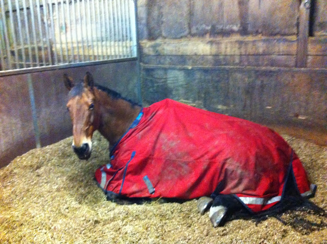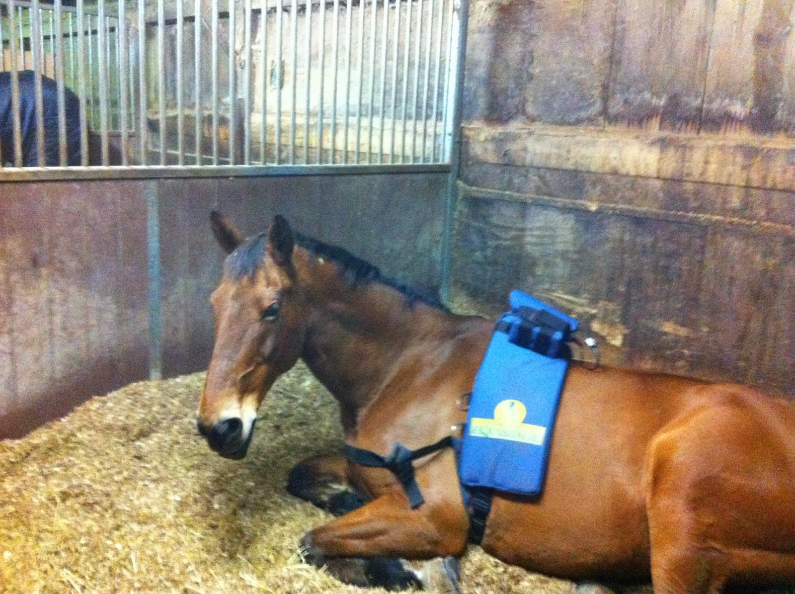 Looked really good again on lunge and in pessoa last night. And was looking so happy and pleased with himself. And then lay down in stable with Equissage on (first time he has laid down since July – he used to do it all the time – so really interesting he is looking better and is calmer in stable).