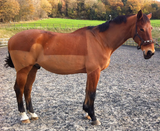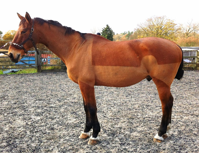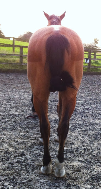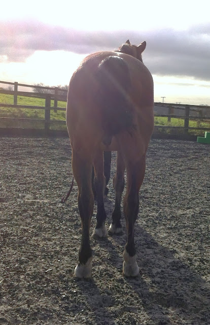 These pictures represent progress in him building up muscle over his loins / SI area, from whatever injury he did to this area in September / October. I hope that he will keep building up more muscle, but am pleased he seems to be going in the right direction and getting stronger, and is generally back to being relaxed and happy.